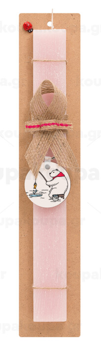 Bear fishing, Easter Set, wooden keychain & scented flat Easter candle (30cm) (PINK)