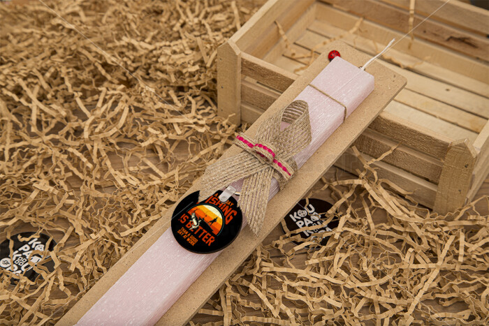 A bad day FISHING is better than a good day at work, Easter Set, wooden keychain & scented flat Easter candle (30cm) (PINK)