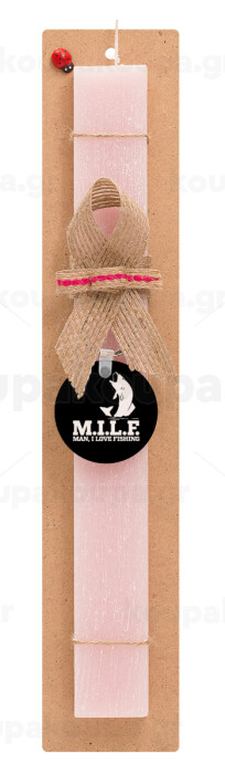 M.I.L.F. Mam i love fishing, Easter Set, wooden keychain & scented flat Easter candle (30cm) (PINK)