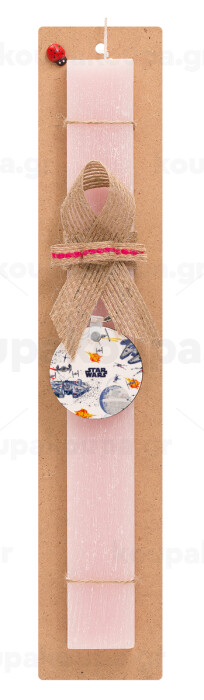 Star wars drawing, Easter Set, wooden keychain & scented flat Easter candle (30cm) (PINK)