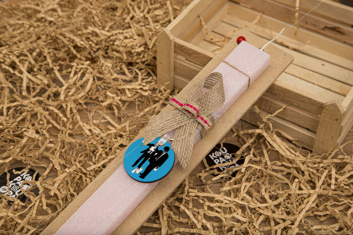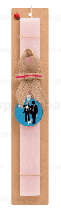 Pulp Fiction 3 meter away, Easter Set, wooden keychain & scented flat Easter candle (30cm) (PINK)