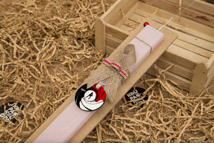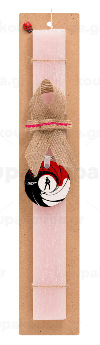 James Bond 007, Easter Set, wooden keychain & scented flat Easter candle (30cm) (PINK)