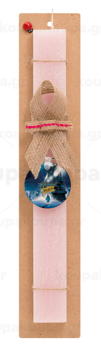 The Polar Express, Easter Set, wooden keychain & scented flat Easter candle (30cm) (PINK)