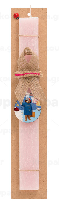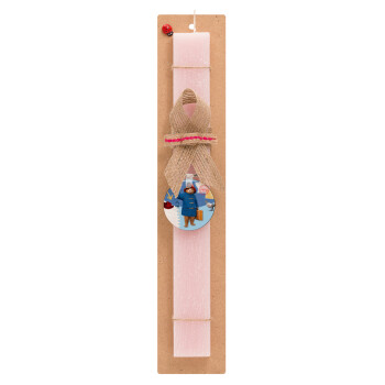 Αρκουδάκι Πάντινγκτον, Easter Set, wooden keychain & scented flat Easter candle (30cm) (PINK)