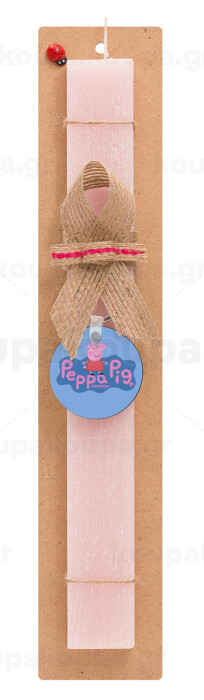 Πέππα το γουρουνάκι μπλε με όνομα, Easter Set, wooden keychain & scented flat Easter candle (30cm) (PINK)
