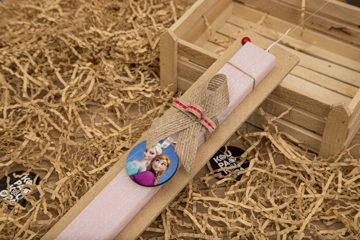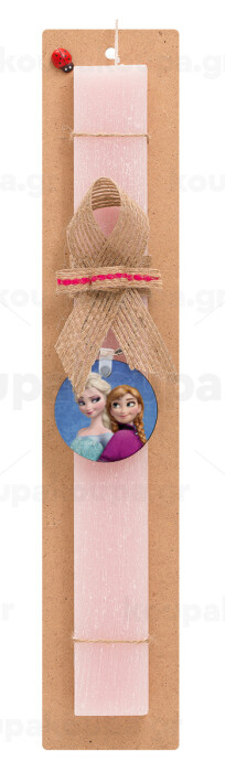Ψυχρά κι ανάποδα Έλσα και Άννα, Easter Set, wooden keychain & scented flat Easter candle (30cm) (PINK)