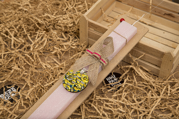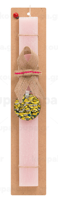 All the minions, Easter Set, wooden keychain & scented flat Easter candle (30cm) (PINK)