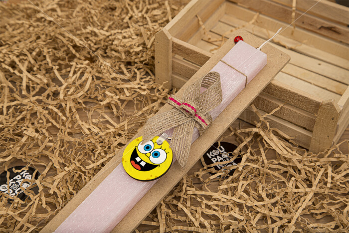 BOB, Easter Set, wooden keychain & scented flat Easter candle (30cm) (PINK)