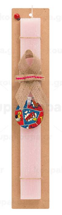 Comic boom!, Easter Set, wooden keychain & scented flat Easter candle (30cm) (PINK)
