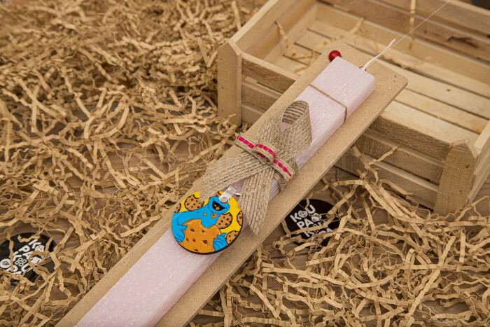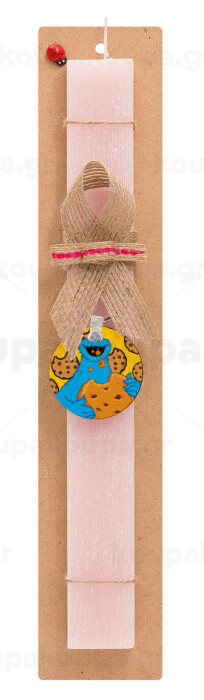 Cookie Monster, Easter Set, wooden keychain & scented flat Easter candle (30cm) (PINK)