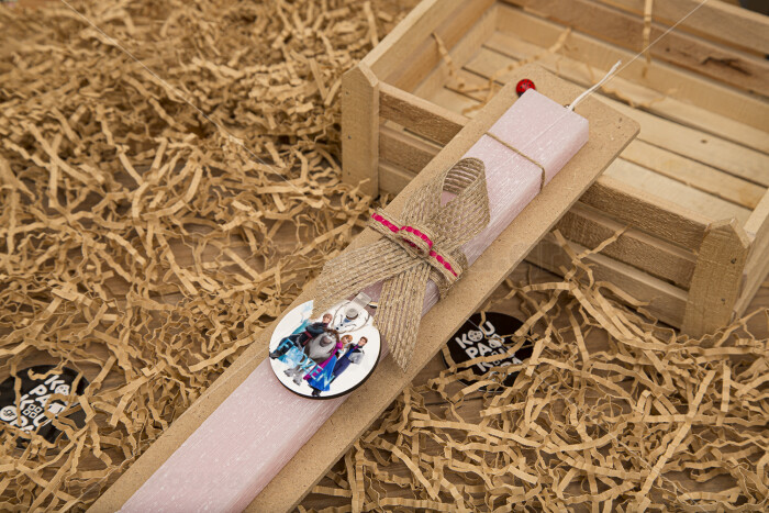 Frozen, Easter Set, wooden keychain & scented flat Easter candle (30cm) (PINK)