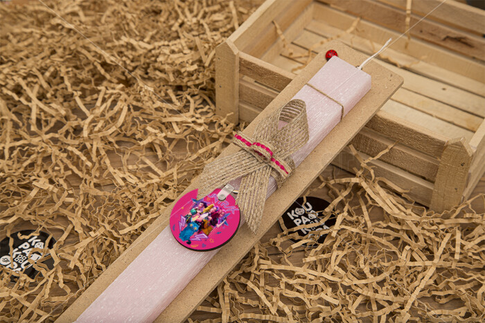 Huntrix K-pop series, Easter Set, wooden keychain & scented flat Easter candle (30cm) (PINK)
