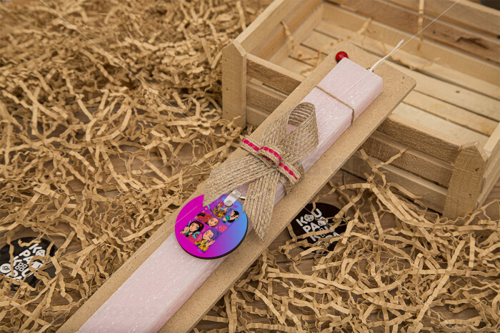Huntrix Kpop Girls, Easter Set, wooden keychain & scented flat Easter candle (30cm) (PINK)
