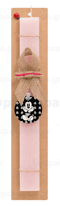 Mickey, Easter Set, wooden keychain & scented flat Easter candle (30cm) (PINK)