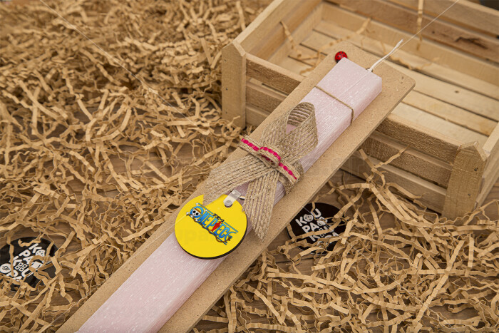 Onepiece logo, Easter Set, wooden keychain & scented flat Easter candle (30cm) (PINK)
