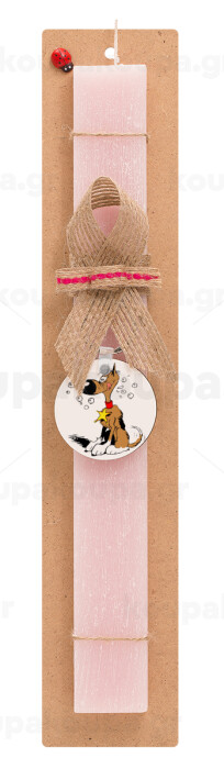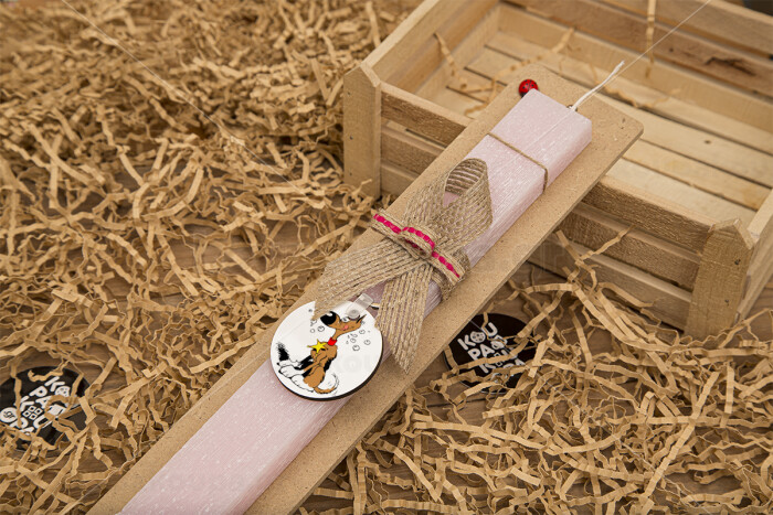 Rantanplan, Easter Set, wooden keychain & scented flat Easter candle (30cm) (PINK)
