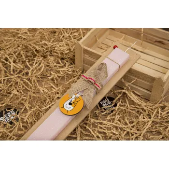 reksio bolek i lolek, Easter Set, wooden keychain & scented flat Easter candle (30cm) (PINK)