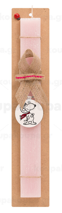 Snoopy ο πιλότος, Easter Set, wooden keychain & scented flat Easter candle (30cm) (PINK)