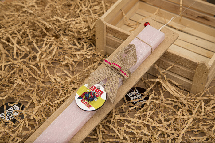 Superhero Deadpool Wolverine, Easter Set, wooden keychain & scented flat Easter candle (30cm) (PINK)
