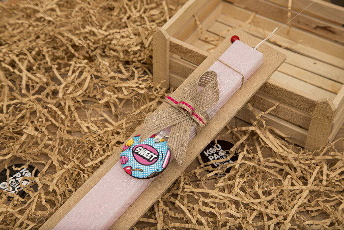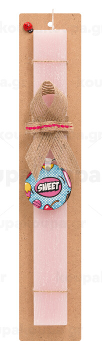 SWEET, Easter Set, wooden keychain & scented flat Easter candle (30cm) (PINK)