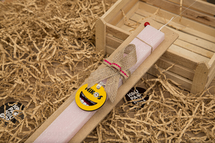 The minions, Easter Set, wooden keychain & scented flat Easter candle (30cm) (PINK)