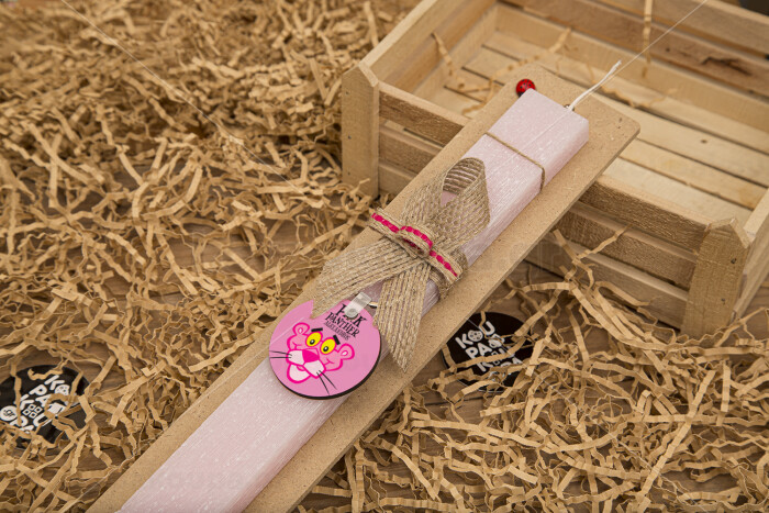 The pink panther, Easter Set, wooden keychain & scented flat Easter candle (30cm) (PINK)