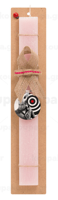 Θου Βου Φαλακρός Πράκτωρ, Easter Set, wooden keychain & scented flat Easter candle (30cm) (PINK)