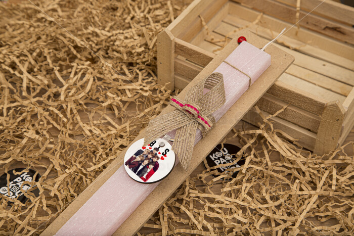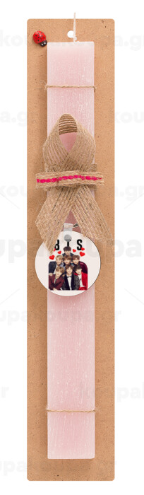 BTS hearts, Easter Set, wooden keychain & scented flat Easter candle (30cm) (PINK)
