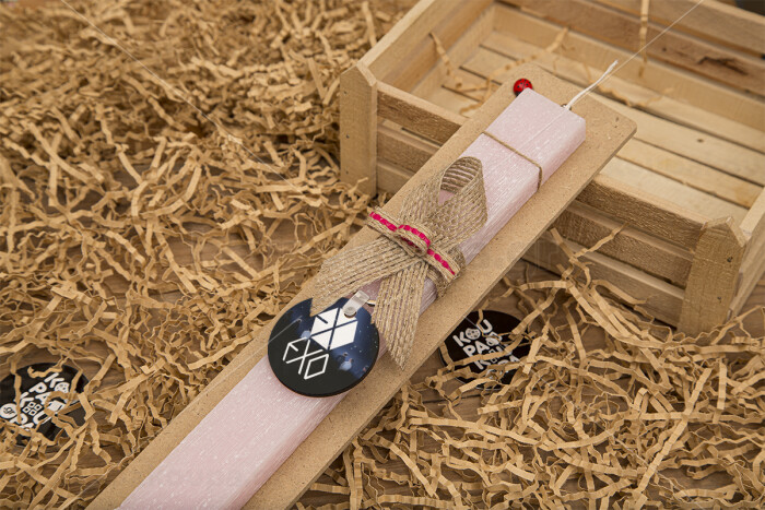 EXO Band korea, Easter Set, wooden keychain & scented flat Easter candle (30cm) (PINK)