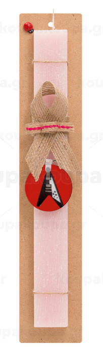 Guitar flying V, Easter Set, wooden keychain & scented flat Easter candle (30cm) (PINK)