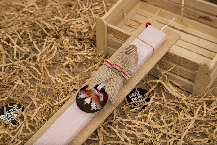 Metallica master of puppets cover, Easter Set, wooden keychain & scented flat Easter candle (30cm) (PINK)