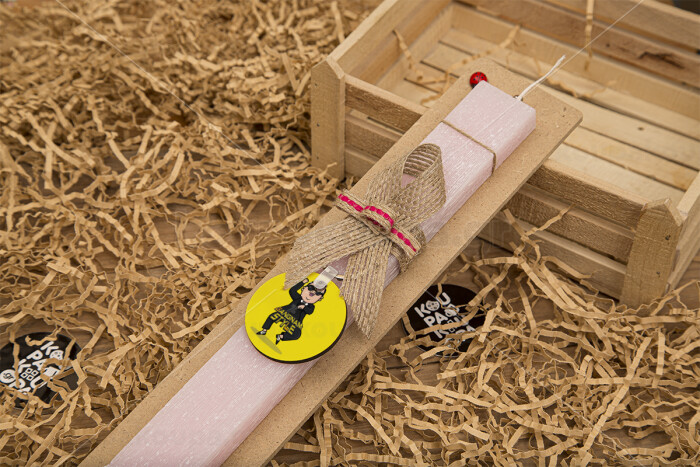 PSY - GANGNAM STYLE, Easter Set, wooden keychain & scented flat Easter candle (30cm) (PINK)