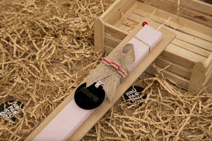 The Doors, Easter Set, wooden keychain & scented flat Easter candle (30cm) (PINK)