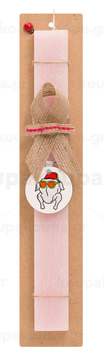 Friends turkey, Easter Set, wooden keychain & scented flat Easter candle (30cm) (PINK)