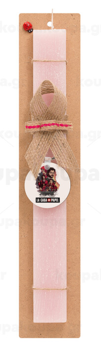 La casa de papel drawing cover, Easter Set, wooden keychain & scented flat Easter candle (30cm) (PINK)