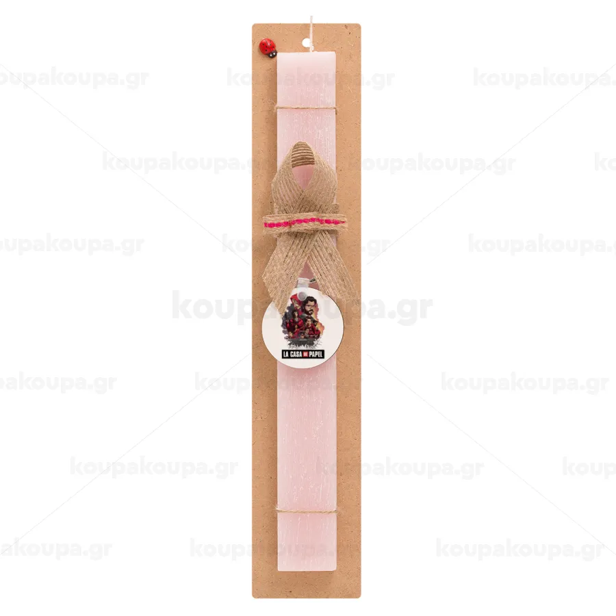 La casa de papel drawing cover, Easter Set, wooden keychain & scented flat Easter candle (30cm) (PINK)