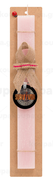Survivor, Easter Set, wooden keychain & scented flat Easter candle (30cm) (PINK)