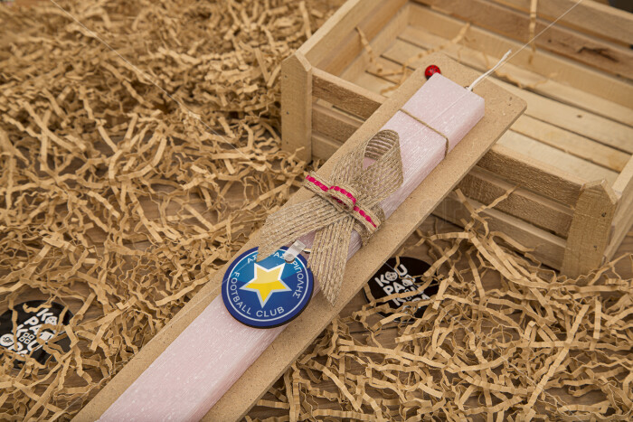 Asteras Tripolis, Easter Set, wooden keychain & scented flat Easter candle (30cm) (PINK)
