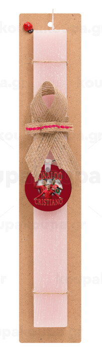 Cristiano Ronaldo, Easter Set, wooden keychain & scented flat Easter candle (30cm) (PINK)