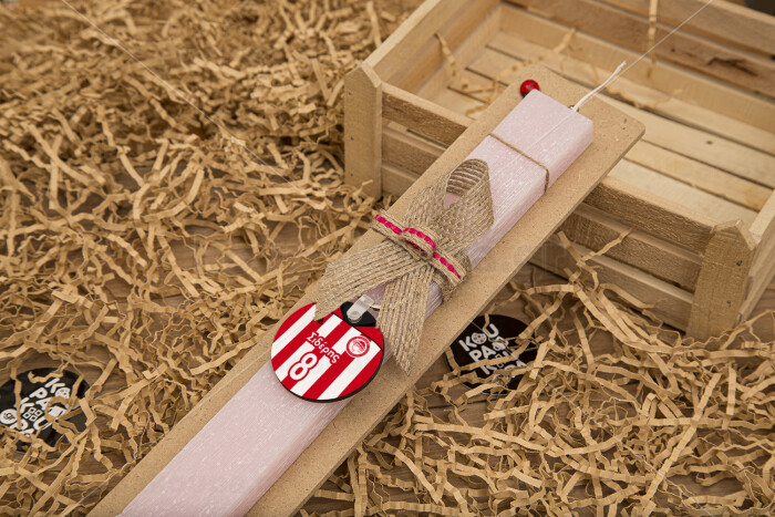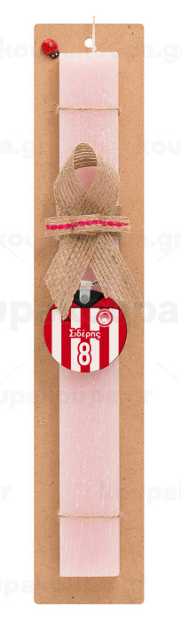 Ολυμπιακός εμφάνιση, Easter Set, wooden keychain & scented flat Easter candle (30cm) (PINK)
