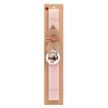 Basketball, Easter Set, wooden keychain & scented flat Easter candle (30cm) (PINK)