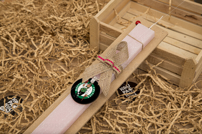 Boston Celtics, Easter Set, wooden keychain & scented flat Easter candle (30cm) (PINK)