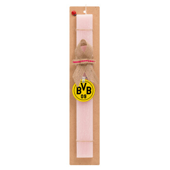BVB Dortmund, Easter Set, wooden keychain & scented flat Easter candle (30cm) (PINK)