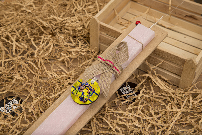 Cristiano Ronaldo Al Nassr, Easter Set, wooden keychain & scented flat Easter candle (30cm) (PINK)