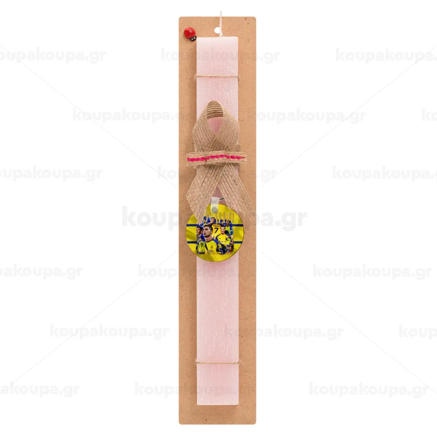 Cristiano Ronaldo Al Nassr, Easter Set, wooden keychain & scented flat Easter candle (30cm) (PINK)