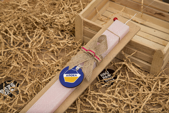 FC ΑΠΟΕΛ Λευκωσίας, Easter Set, wooden keychain & scented flat Easter candle (30cm) (PINK)