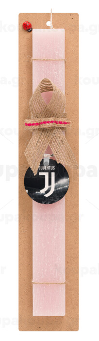 FC Juventus, Easter Set, wooden keychain & scented flat Easter candle (30cm) (PINK)