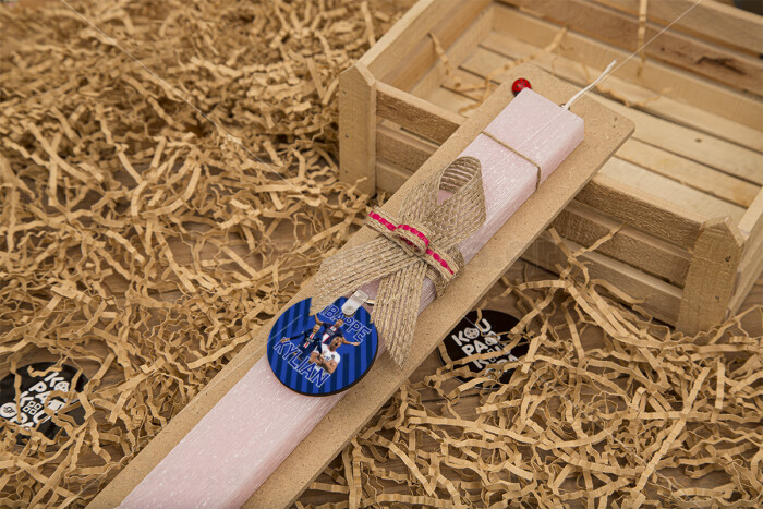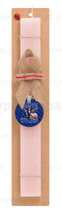 Kylian Mbappé, Easter Set, wooden keychain & scented flat Easter candle (30cm) (PINK)