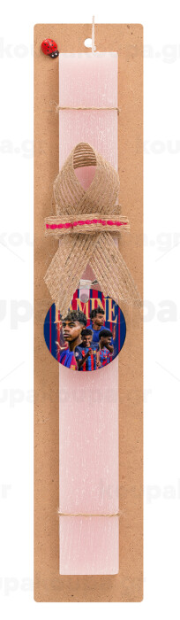 lamine yamal FCB, Easter Set, wooden keychain & scented flat Easter candle (30cm) (PINK)