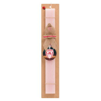 Olympiacos B.C., Easter Set, wooden keychain & scented flat Easter candle (30cm) (PINK)